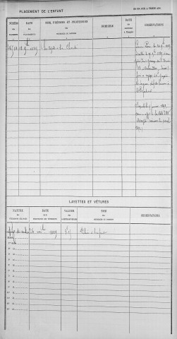 État des admissions dans le service des enfants, toutes catégories confondues.