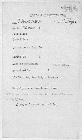 3335W - Personnes internées dans la prison Montluc de Lyon (1939-1945)