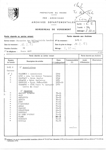 Type d'entrée : Versement. Date d'entrée : 11/02/1983