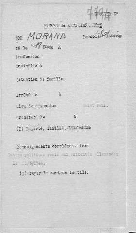 3335W - Personnes internées dans la prison Montluc de Lyon (1939-1945)