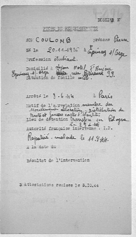 3335W - Personnes internées dans la prison Montluc de Lyon (1939-1945)