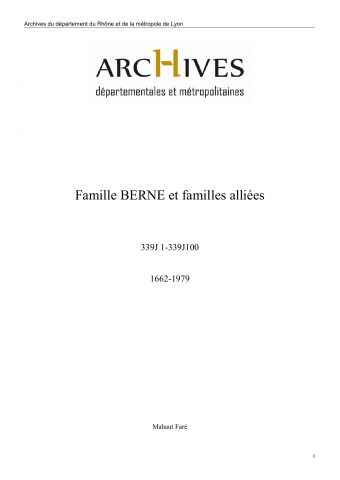 Ce fonds est principalement constitué des archives de la famille Berne. Il contient de nombreuses correspondances familiales et amicales, des documents de gestion familiale mais aussi des papiers en lien avec les fonctions publiques d'Antoine II et Ennemond II Berne. Ces documents permettent de retracer l'histoire d'une famille à la fin du XVIIIe siècle et durant le XIXe siècle. Ils viennent également compléter les archives de la commune de Chassagny.