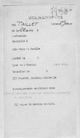 3335W - Personnes internées dans la prison Montluc de Lyon (1939-1945)