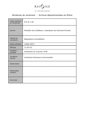 Type d'entrée : Versement. Date d'entrée : 09/01/1978.