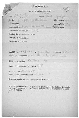 3335W - Personnes internées dans la prison Montluc de Lyon (1939-1945)