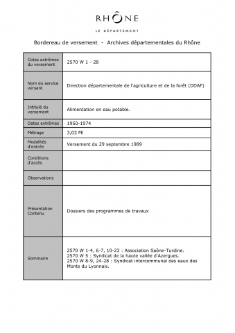 Type d'entrée : Versement. Date d'entrée : 29/09/1989