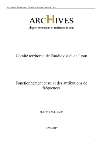 5643W - Comité territorial de l'audiovisuel de Lyon - Fonctionnement et suivi des attributions de fréquences