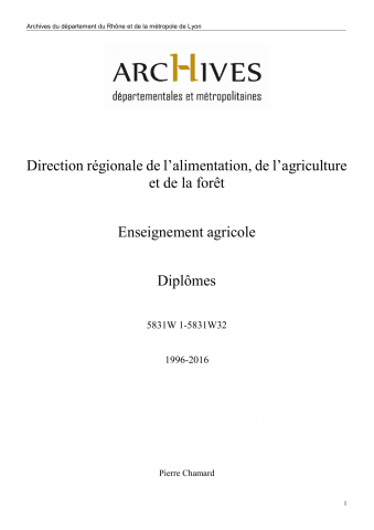 Jusqu'à leur versement, les archives étaient conservées dans les locaux de la DRAAF Auvergne-Rhône-Alpes, Cité administrative d'Etat, 165 rue Garibaldi dans le 3e arrondissement de Lyon.