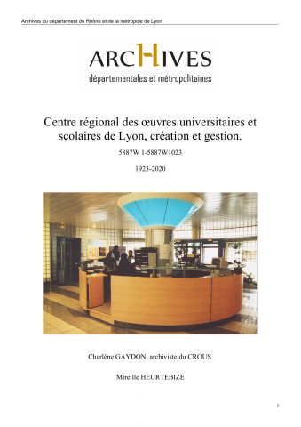 Le Centre Régional des Oeuvres universitaires et Scolaires (CROUS) de Lyon a procédé au versement de ses archives historiques le 2 mars 2022.
