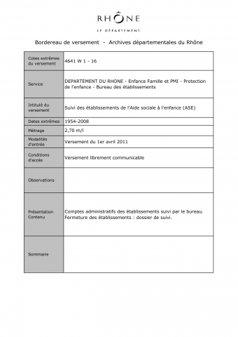 Comptes administratifs (2000-2008). Dossier sur le suivi de l'école de perfectionnement de Saint-Martin-en-Haut (1954-1981). Fermeture des établissements : dossier de suivi (1990-1995).