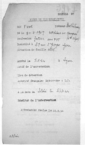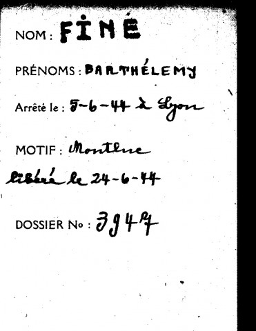 3335W - Personnes internées dans la prison Montluc de Lyon (1939-1945)