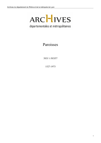 Dans la pratique, lorsque des archives paroissiales sont retrouvées dans des communes (principalement à l'occasion d'inspections), un contact avec les archives diocésaines permet de répartir au mieux les documents, en tenant compte de l'état du droit mais aussi de l'intérêt de ne pas nuire à l'unité des fonds. C'est ainsi que sont entrés aux Archives départementales du Rhône les documents décrits dans la sous-série 383J.