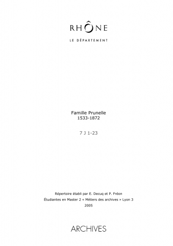 Le fonds Prunelle a été donné aux Archives départementales du Rhône le 12 août 1950.